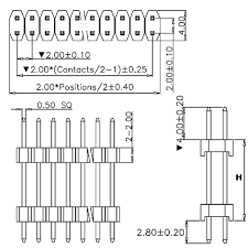 CONNETTORE STRIP MASCHIO 40 POLI Serie: PH1S25 Passo 2.54 mm FILA SINGOLA DRITTA H. 20 MM / H 3 MM